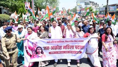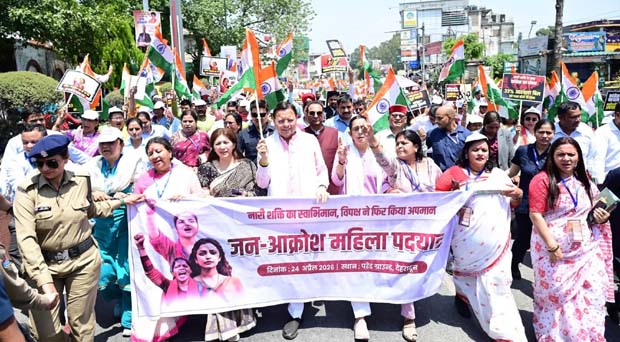 परेड ग्राउंड से शुरू जनआक्रोश पदयात्रा में मुख्यमंत्री पुष्कर सिंह धामी और भाजपा प्रदेश अध्यक्ष महेंद्र भट्ट ने महिला कार्यकर्ताओं का उत्साह बढ़ाया। इससे पूर्व जनसभा में सीएम धामी ने कहा कि नारी शक्ति वंदन अधिनियम को लेकर विपक्ष का दोहरा और विरोधाभासी चेहरा सामने आ चुका है। एक तरफ विपक्ष महिलाओं की बात करता है, तो दूसरी तरफ संसद में इस ऐतिहासिक अधिनियम की राह में रोड़े अटकाने का प्रयास करता है।