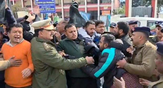 गोपेश्वर। अंकिता भंडारी प्रकरण को लेकर भाजपा प्रदेश अध्यक्ष महेंद्र प्रसाद भट्ट को अपने गृह जनपद चमोली में विरोध का सामना करना पड़ा। कांग्रेस और यूकेडी कार्यकर्ताओं ने काले झंडे दिखाकर भट्ट के काफिले को रोकने का प्रयास किया। इसबीच पुलिस और प्रदर्शनकारियों के बीच तीखी झड़प हो गई।