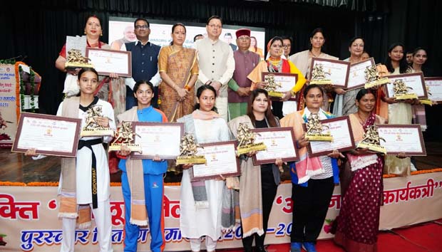 देहरादून। मुख्यमंत्री श्री पुष्कर सिंह धामी ने समाज के विभिन्न क्षेत्रों में उल्लेखनीय कार्य करने वाली 13 महिलाओं को तीलू रौतेली पुरस्कार और 33 आंगनवाड़ी कार्यकत्रियों को उत्कृष्ट सेवा कार्य के लिए सम्मानित किया।