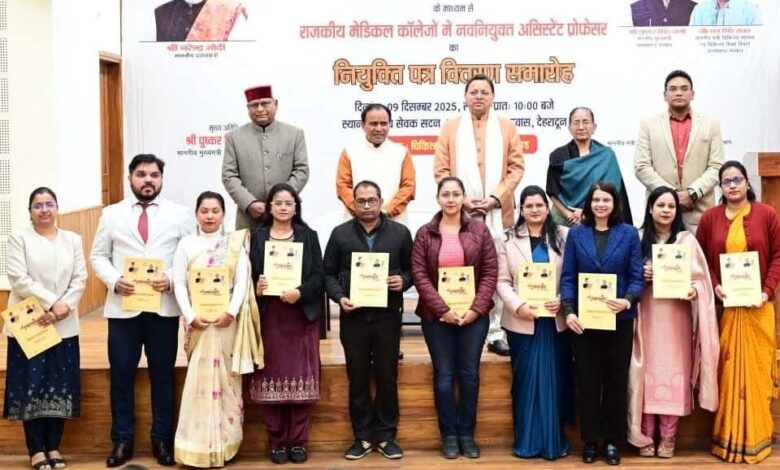 देहरादून। मुख्यमंत्री पुष्कर सिंह धामी ने राजकीय मेडिकल कॉलेजों के 142 अभ्यर्थियों को नियुक्ति पत्र वितरित किए। उन्होंने इसे प्रदेश में चिकित्सा शिक्षा और स्वास्थ्य सेवाओं को सशक्त बनाने की दिशा में महत्वपूर्ण कदम बताया।