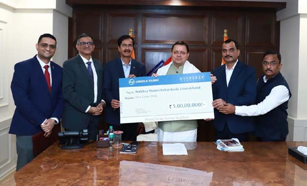 देहरादून। लार्सन एंड टुब्रो के एक प्रतिनिधिमंडल ने नई दिल्ली में मुख्यमंत्री पुष्कर सिंह धामी से शिष्टाचार भेंट की। इस अवसर पर प्रतिनिधिमंडल ने प्रदेश में हाल ही में हुई प्राकृतिक आपदाओं से प्रभावित लोगों की सहायता एवं राहत-पुनर्वास कार्यों में सहयोग के लिए ₹5 करोड़ की सहायता राशि मुख्यमंत्री राहत कोष में प्रदान की।