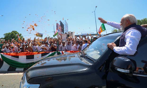 प्रधानमंत्री नरेंद्र मोदी ने भी हाथ जोड़कर और हाथ हिलाकर लोगों का अभिवादन स्वीकार किया। जनता के इस अपार प्रेम और समर्थन से वे बेहद प्रसन्न और उत्साहित दिखाई दिए।