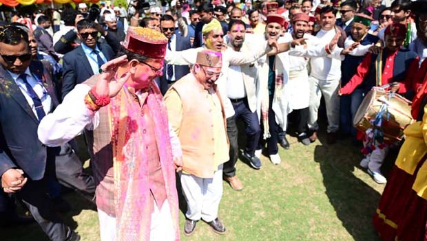 पूर्वाह्न से ही प्रदेशभर से आए लोक कलाकार और संस्कृतिकर्मियों की टोलियां होली गायन करते हुए मुख्यमंत्री आवास पहुंचती रहीं। इस अवसर पर धामी सरकार के मंत्री, विधायक, अधिकारी और विभिन्न वर्गों के गणमान्य लोगों ने एक-दूसरे को अबीर-गुलाल लगाकर होली की शुभकामनाएं दीं।