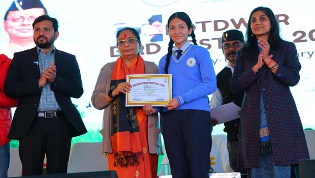 कोटद्वार। सनेह क्षेत्र में दो दिवसीय बर्ड वॉचिंग फेस्टिवल सफलता के साथ संपन्न हो गया। मुख्य अतिथि विधानसभा अध्यक्ष एवं क्षेत्रीय विधायक ऋतु खण्डूरी भूषण ने प्रतियोगिताओं के विजेता छात्र-छात्राओं को प्रमाणपत्र व पुरस्कृत किया।