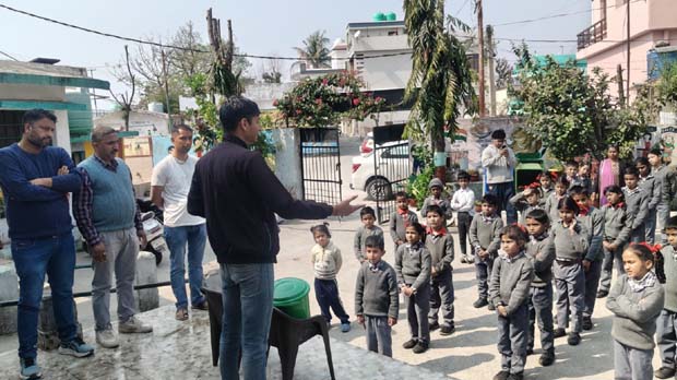 पालिका की टीम ने विद्यार्थियों को स्वच्छता बनाए रखने, कचरे का पृथक्करण करने और घरों में उपयोग होने वाले नीले व हरे डस्टबिन के सही इस्तेमाल की जानकारी दी। साथ ही प्लास्टिक मुक्त जीवन और स्वच्छ वातावरण के महत्व पर प्रकाश डालते हुए स्वच्छ जीवनशैली अपनाने का संदेश दिया।